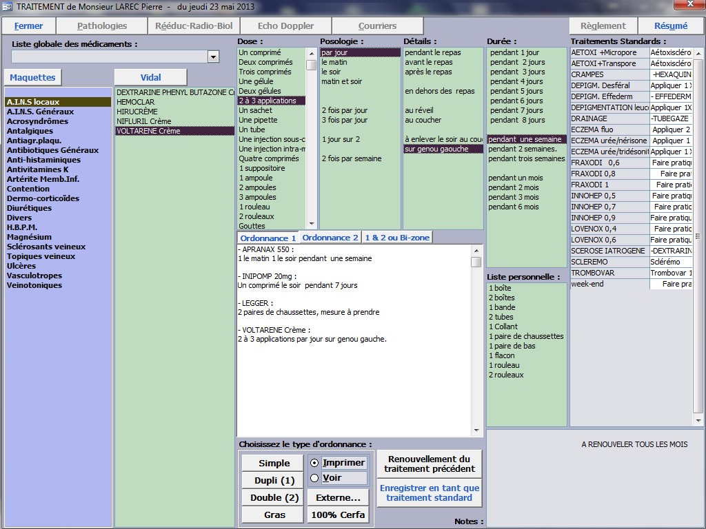 - Rapide et efficace ! Compta et ordonnances se rédigent et s’impriment en 2 clics, le courrier en 1 seul clic.