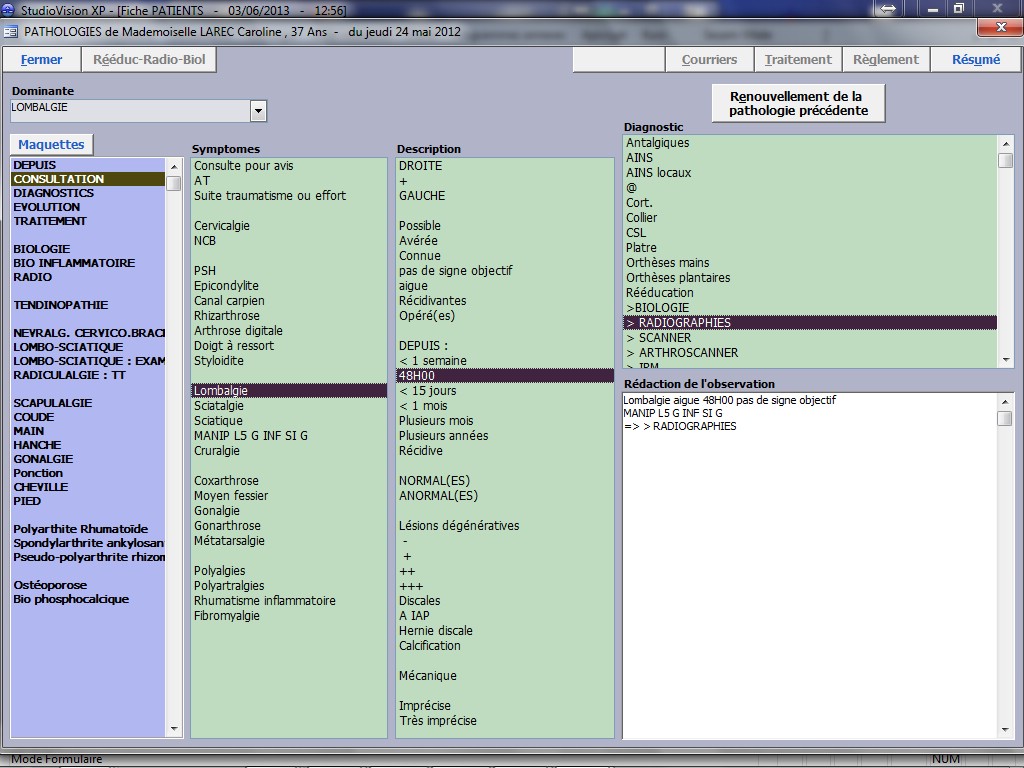 Logiciel pour rhumatologues