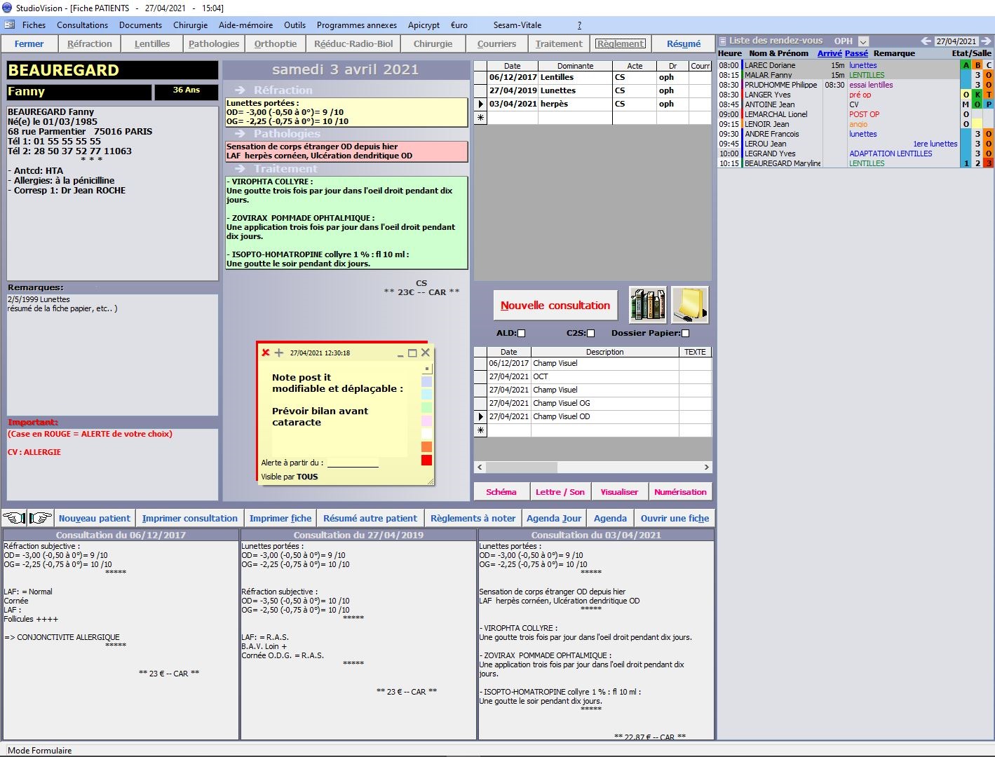 StudioVision propose une solution spécialement étudiée pour les spécificités des centres d’ophtalmologie et de santé , accompagnant ainsi les évolutions de la profession. Elle permet en particulier :